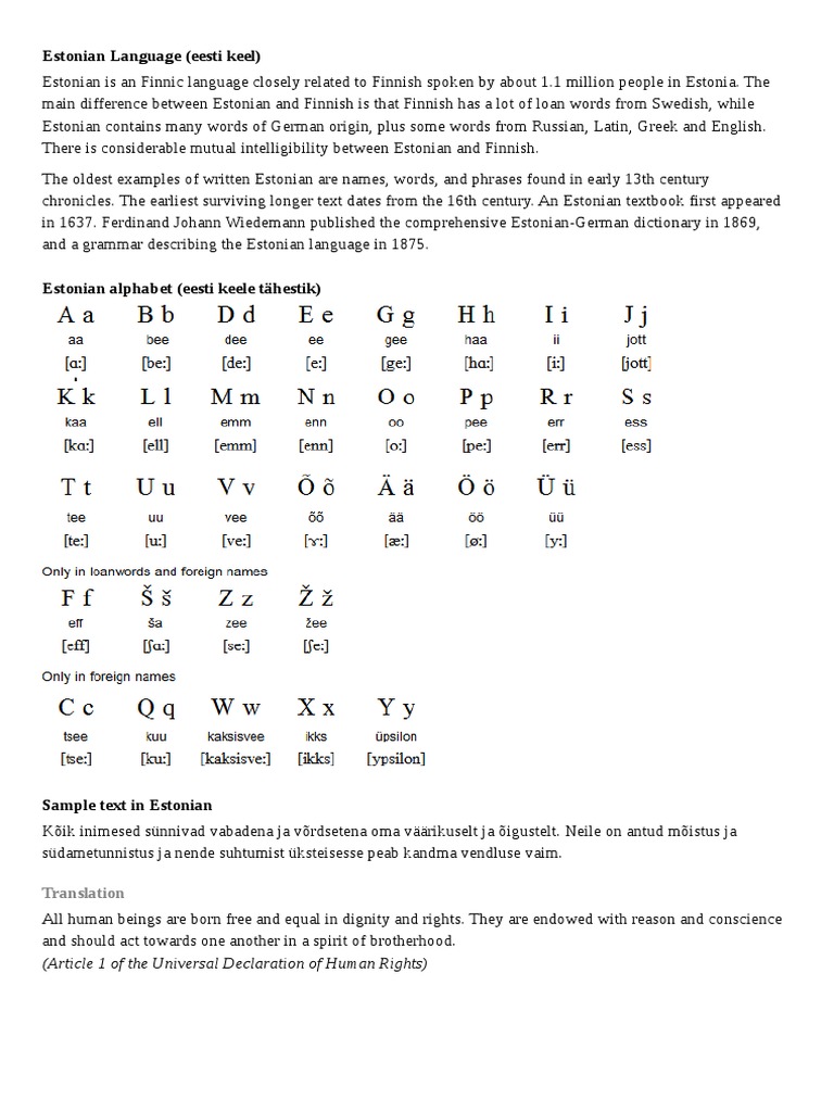 Jump to navigation jump to search. Estonian is a southern finnic language spoken mainly in estonia. In order to become a citizen of the republic of estonia, the estonian language proficiency level must be at least b1. There are also estonian speakers in finland and australia. The northern, or tallinn, dialect is the basis of the estonian literary.